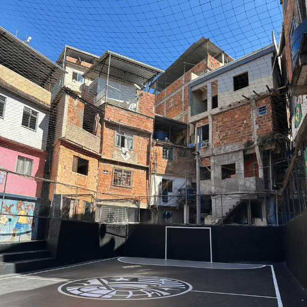 Next, we head to the community’s football court, a place of passion and gathering that inspired the popular FIFA Street video game. The court’s architecture, which is surrounded by houses, reveals the beauty and poetry of football in the favela.